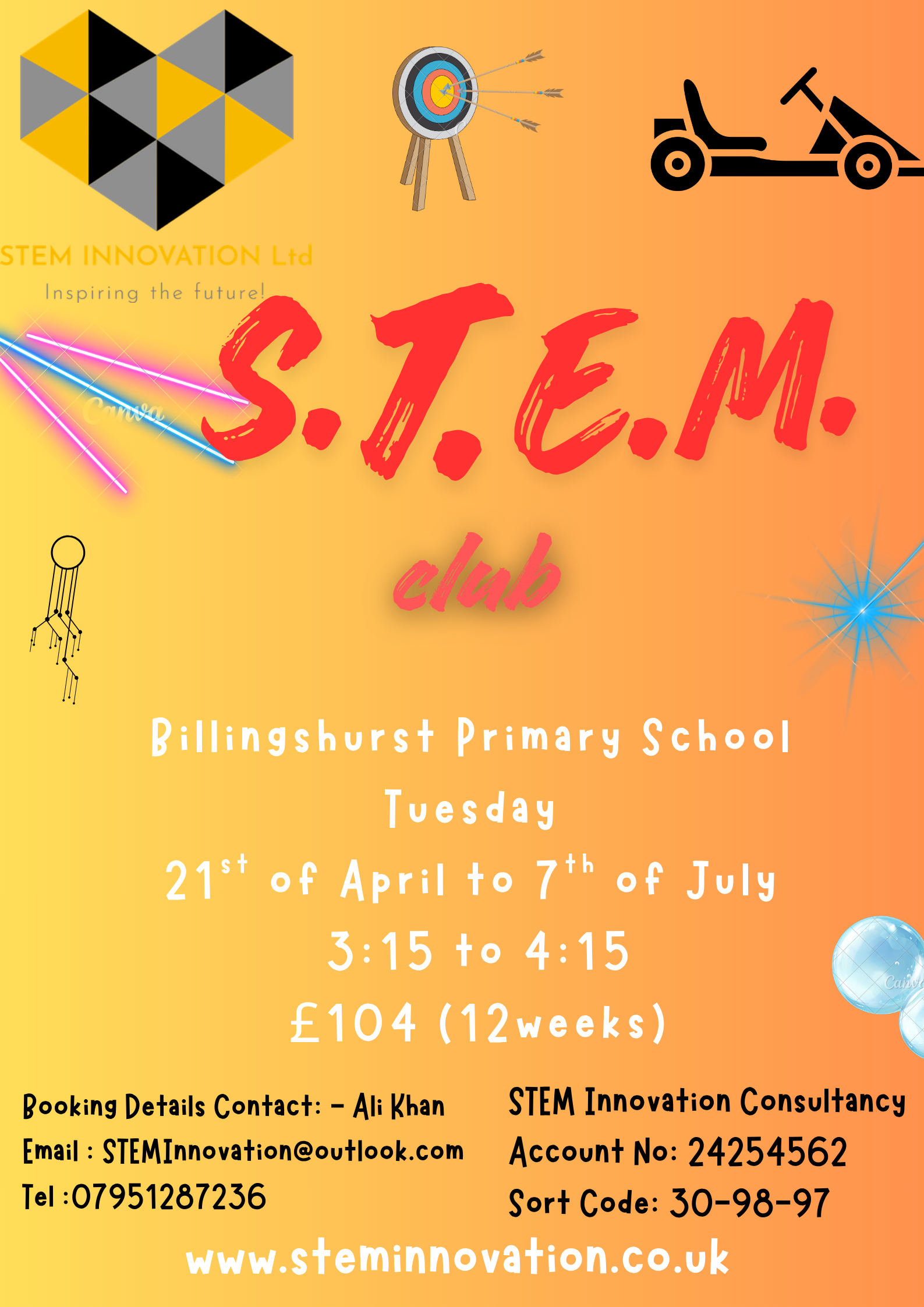 This is a fun & interactive club incorporating all things 'STEAM' related, (Science, Technology, Engineering, Arts and Maths,) loads of fun and interactive sessions, from Electric go-kart, 3D printing, Film production, Animation, Acid base reactions, Elephant Toothpaste, VR, Drones, Rockets, Robotics, Coding etc and more...